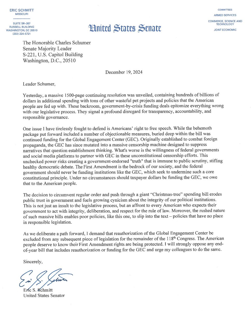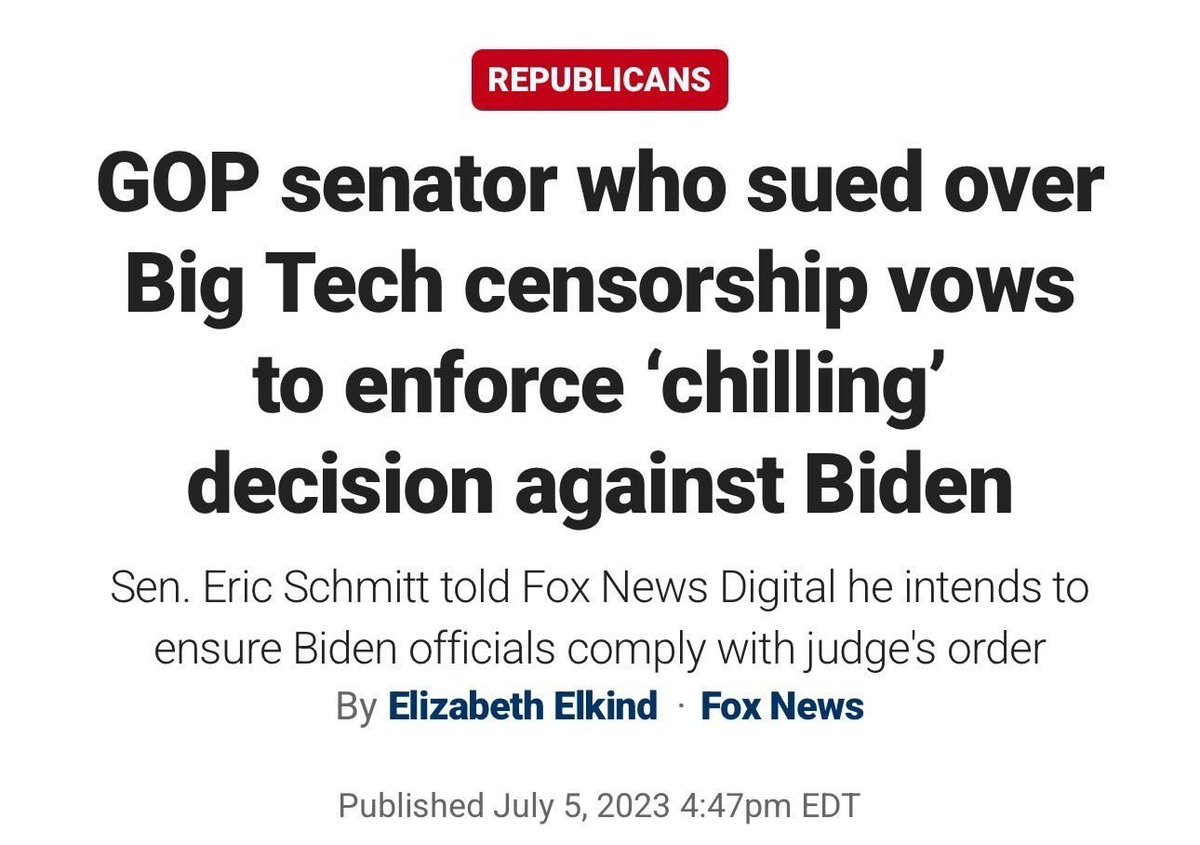 I fought this censorship-industrial complex as Attorney General of Missouri, where I sued the Biden admin for pressuring tech platforms into censoring conservatives—and took them to the Supreme Court. Now it's time to work with President Trump to end this once and for all. https://t.co/hUPYmxdyX2