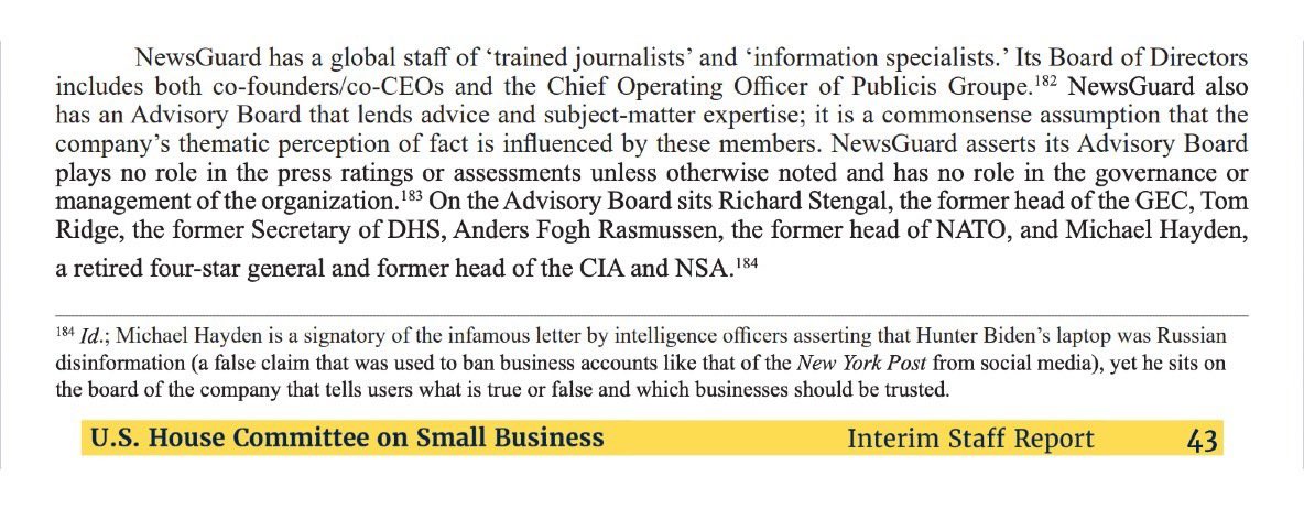 In other words: Using these groups, our government was helping European bureaucrats bully US tech companies into censoring American speech. That includes groups like NewsGuard—whose advisory board has boasted the former heads of the CIA and NSA, DHS, and the GEC, respectively. https://t.co/WQekCCwPVl