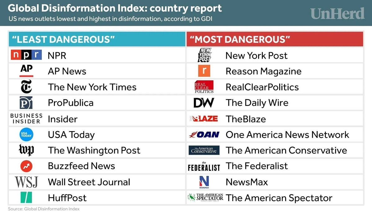 For example: One GEC-funded group, the London-based Global Disinformation Index, compiled blacklists of media outlets to feed to advertisers—essentially a form of financial warfare against disfavored outlets. The top 10 outlets on its "disinformation" list were all on the right. https://t.co/sdjGwfu3dF