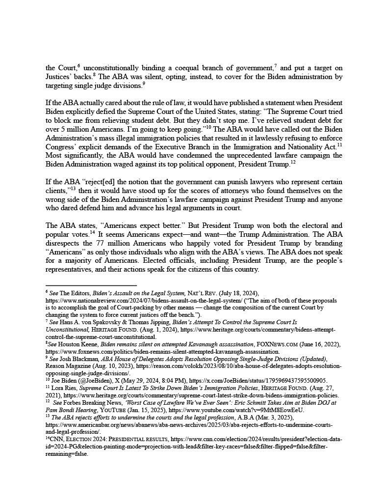 The American Bar Association sat on the sidelines as our legal system was weaponized against normal Americans. Now, they launch a pressure campaign against President Trump on day one. We’ve had enough. It’s time to liberate our legal system from this failed institution. 🧵 https://t.co/C2XwX2Cb8w