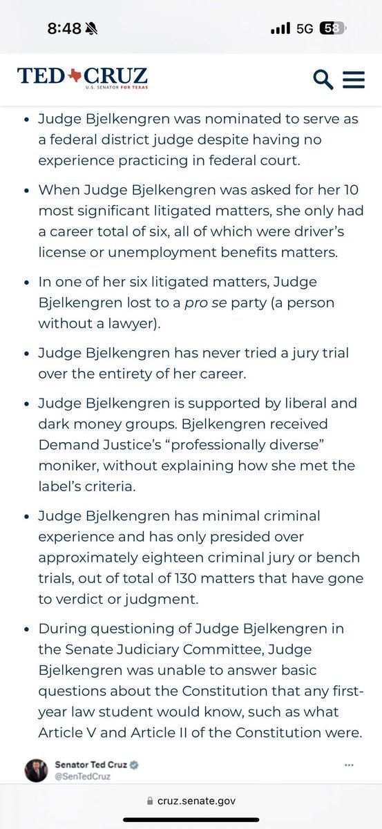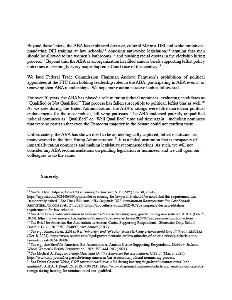 That is why I, along with @BasedMikeLee, @TedCruz. @HawleyMO, @MarshaBlackburn, and @BernieMoreno, are taking the radical step to break our judicial selection process free from ABA control. We are excited to work with the Trump Administration & @PamBondi to put great Trump judges on our nation's courts. END