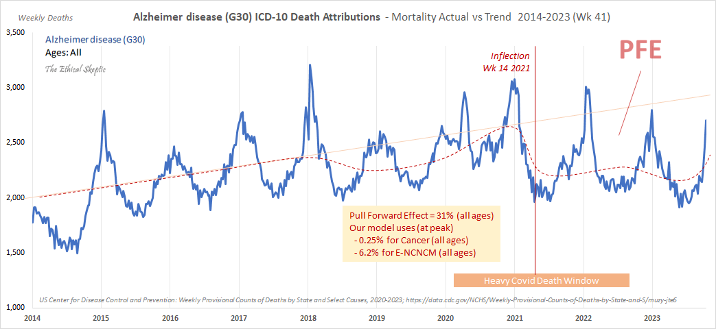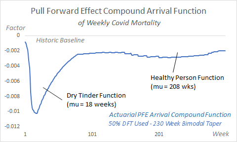 Pull Forward Effect is a compound (more than one, combined) arrival form for instance, ascertainable through sampling the CDC data in a certain way with specific ICD codes. If you do not use PFE, you will get the exact wrong answer for mortality (and are incompetent). In fact, endangering lives through that incompetence. I don't care who 'doesn't use it' - they are still wrong.