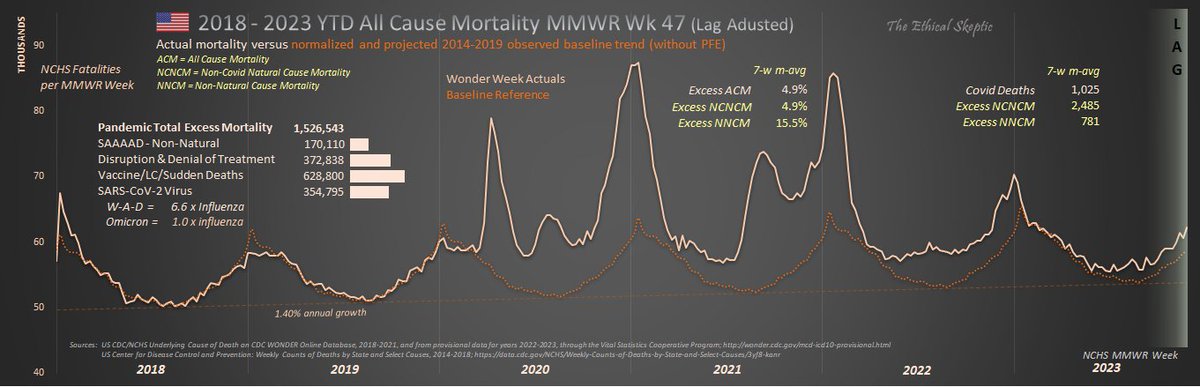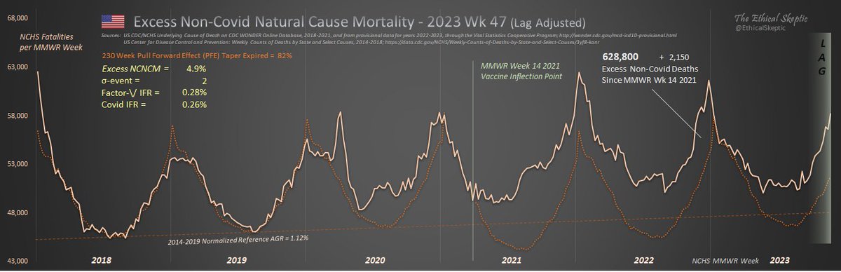 This 628,000 excess does not even include ▫️R99 Mortality - 46,500 ▫️Non-Natural Excess Mortality - 171,110 ▫️999 Mortality - ~90,000 ▫️Vaccine EUA Deaths - 372,838 ▫️100% of measured pull forward effect So, we have been very conservative https://t.co/mUlFkxin9B