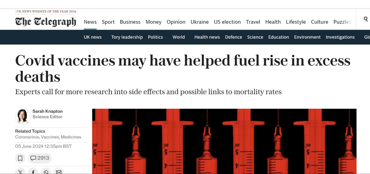 OMG I can't believe I'm actually seeing this - I had assumed lamestream media was 100% bought and paid for on this topic. Wow: Article link: https://telegraph.co.uk/news/2024/06/04/covid-vaccines-may-have-helped-fuel-rise-in-excess-deaths/