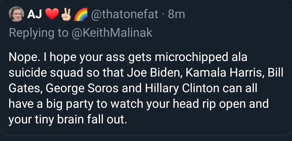 1. I'm quite happy actually, thank you. No guilt weighing on me for pushing poison on the public. 2. I'm not a failed wannabe rocker. All things considered, YOU wrote "We're Not Gonna Take It" and then literally "took it." And you took all of it. Straight up the ass. The government compliance, the mandates, every jab. And then requested more of it. By all accounts, you failed. 3. Learn the difference between your and you're