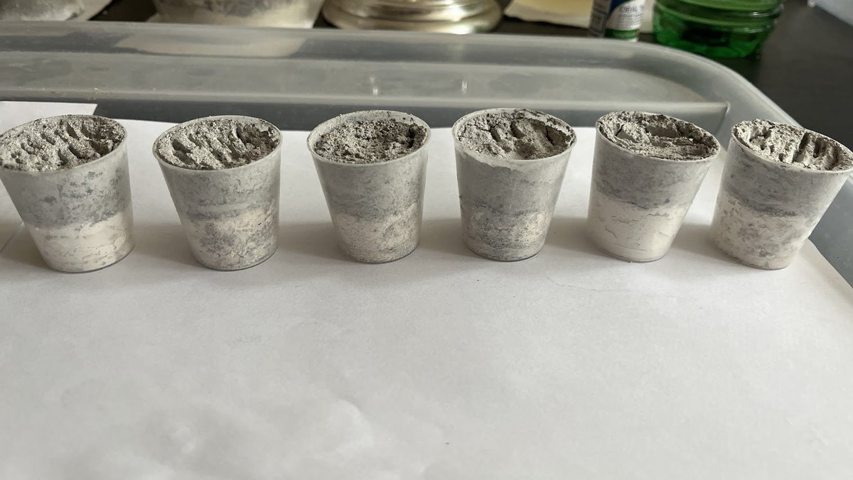 3. I did this about 28,000 times, no problem there. The problem was what came next. First of all, it took an absurd amount of time for my stupid brain to realize that no matter how pretty the foam looked, the reaction was incomplete, and my waterglass was still contaminated with the two alkalis above. I just kept pouring and pouring and pouring new Inca stone samples into plastic cups, and it wasn’t waterproof, and it wasn’t waterproof, and it wasn’t waterproof. I didn’t open a nub in them because I felt bad about cutting the bottoms off the plastic cups. (I’m an idiot.) I showed that huge crack in one of my Inca samples a few days ago—now I know why it’s there, but for months I had no clue. Then one day the darkness lifted from my stupid brain and I realized the core problem: the imperfect reaction. After that I proceeded to waste another two months chasing the perfect reaction. I cooked so much stone soup it was unreal. Of course, I never achieved a perfect reaction with homemade methods. And if I couldn’t achieve it, I had to accept that the Incas couldn’t either. Dead end.