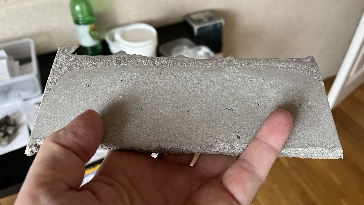 5. Why is it soft there? There’s this region where the material is still soft-ish. I have absolutely no idea why. It’s dry, evaporation did its job a long time ago. Then why is this region softer than the rest? A mystery. Anyway I put a few additional stones there to see what happens with it under that weight. We’ll see. AND THE REST of the casting IS PERFECT!!!! 🤩