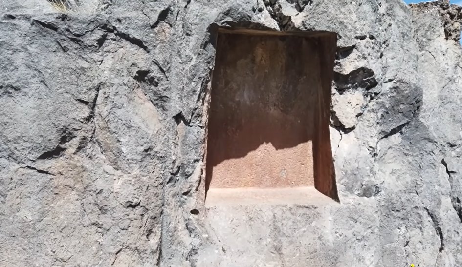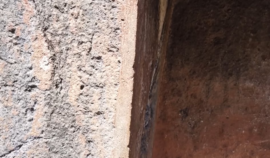 6. This also explains the other oddities. See this window recess in the bedrock? Inkilltambo. It’s one thing that they could carve around it, but how exactly did they stick the pry bar under and behind the block they wanted to remove? Here’s my answer: they didn’t. Can you see the brutal color difference? They cut some kind of hole, then “precisely” plastered it back with the “softened stone” material. You don’t believe it?