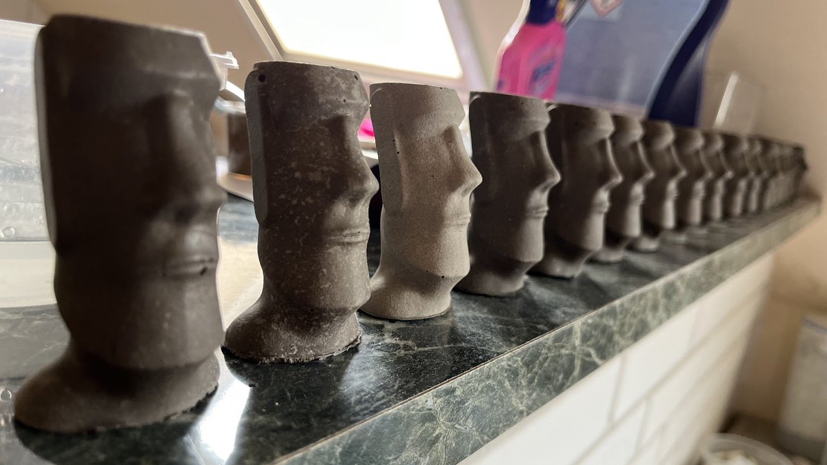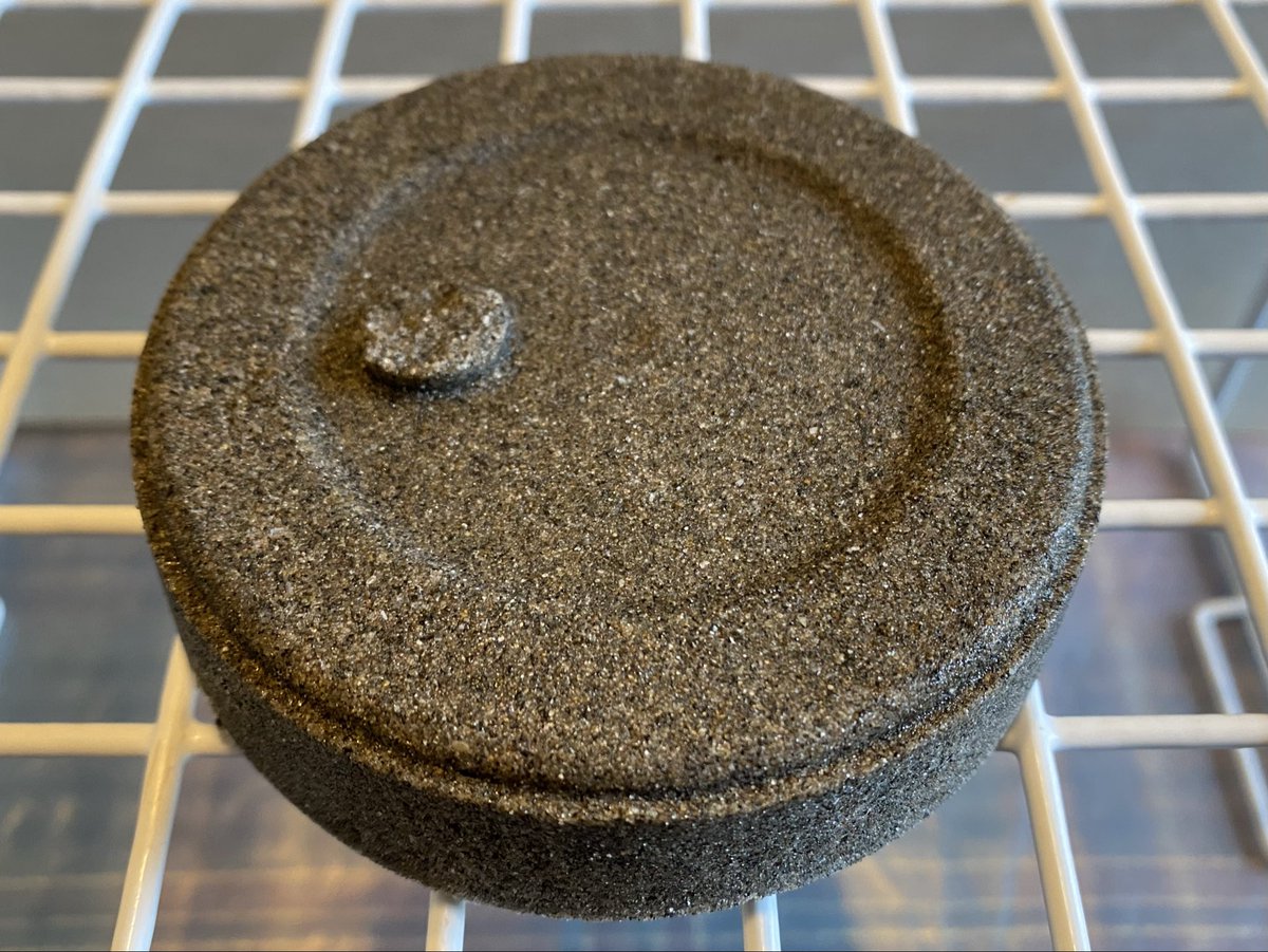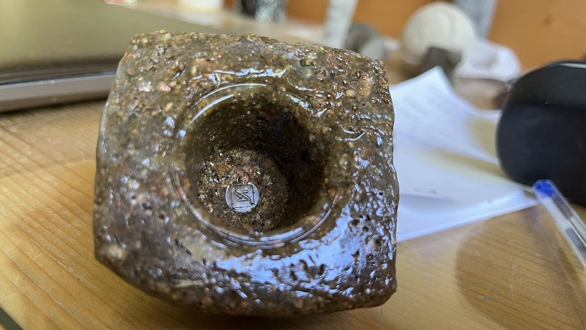 🪨 The nubs are coming! 🪨 I will reveal the “secret catalyst” on December first as promised. With an actual, easy to follow recipe + video instructions. The latest-greatest (v3.0) is now available to peer reviewers all over the world, and the very first result just arrived from @mweryk WITH A BEAUTIFUL NUB! Yeees! We are not cheating anymore by pouring down the excess liquid! Why should we? You can’t tilt a megaton stone block either, right? The only way to get rid of the excess liquid is to open a hole somewhere at the bottom of the mold. Surprisingly (no), you don’t need to instruct the liquid where to leave. It goes through the stone automagically! I was thinking whether this would be tru when the cast stone is several meters thick and realized that the answer is a big yes. Why? How? Well, the liquid on the top doesn’t need to go to the bottom at all. It’s moving half an inch only. Just think about it: you need to get rid of half an inch of liquid: it just soaked on the top as this amount leaves at the bottom. And here we are. A beautiful, religious (or ceremonial!) whatever, with beautifully chiseled surfaces and an ANCIENT nub!
