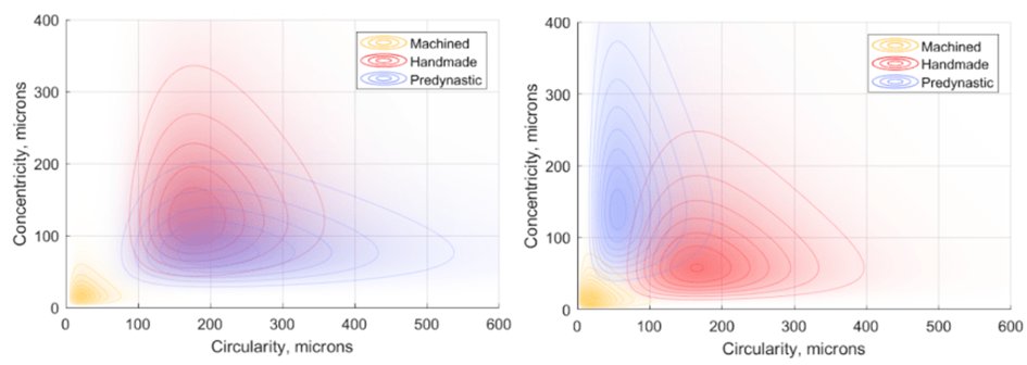 Lately, a lot of new information has come to light about ancient Egyptian precision stone vases. Most recently, flat-out stated that he has closed the book on this topic — mystery solved. But where one old book closes, a new one opens. 🧵 Don’t get me wrong: I fully accept Max’s measurements and conclusions, especially the point that there is no high-precision vase for which we can say with certainty which tomb it was taken from, by whom, and when — meaning that it is unquestionably ancient and original. Yes, all the precision vases are in private collections, with zero track record. By contrast, the vases whose provenance is absolutely rock-solid — well, those are not insanely precise. In terms of accuracy, they fall into the same category as stone vases still being made by hand in Egypt today. With these measurements and conclusions, I completely agree. And yet… something still doesn’t add up. Max himself showed that the type of imprecision in the ancient vases is different from that of modern ones. Let's see: I’m thinking of this diagram, taken from Max’s website: