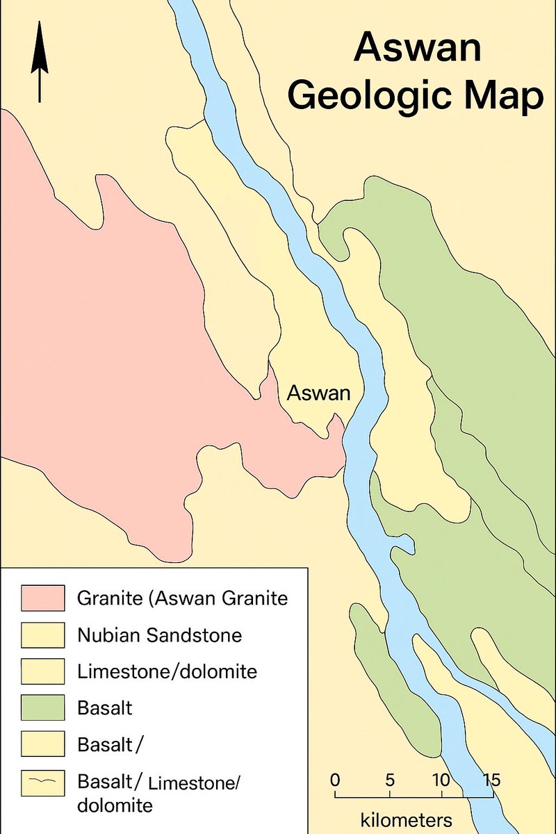 4. Everyone says, “Oh, in Aswan you can only quarry gigantic solid blocks.” Yeah… no. Even in Aswan, flawless, monolithic, huge blocks suitable for cutting are rare. Rare compared to what? There’s the famous quarry with the Unfinished Obelisk, and in that particular quarry, good solid granite is fairly common—the whole place is made of it. Yes, but here comes the brutal surprise! The Aswan region contains a roughly 150-square-kilometre continuous “granite sea.” Within that granite ocean, the quarry with the Unfinished Obelisk is just one tiny droplet. People have been quarrying this area for roughly twenty thousand years—mainly for CRUSHED STONE. Granite rubble isn’t just common in Aswan; you literally can’t take a step without stepping on granite fragments. In this zone even the desert “sand” isn’t quartz sand—it’s pulverised Aswan granite. Across this ~150 km² area there is practically no soil—just granite grit and exposed bedrock. You don’t even need to crush anything! A broom and a shovel are enough. The most common particle size (in some places up to 70% of the material) is 1–6 mm—perfect for casting artificial stone. Once you walk just 1 km inland from the Nile floodplain, 98% of the ground is granite grit. Even the dust is granite powder.