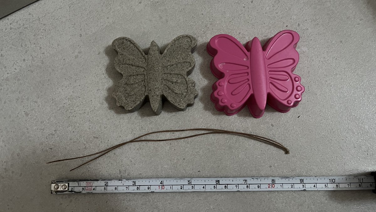 2. This butterfly, for instance, I made using one of my “secret” recipes (found in my book), from sand, home made waterglass, and a pinch of a special catalyst material. In other words, it’s from “sandstone", but vitrified! Its special feature? It hardens almost instantly, even underwater (see: the cast stones of Osireion), and the mixture barely shrinks or deforms at all. It just pops right in and out of the (stolen) kids’ sandbox mold I used.