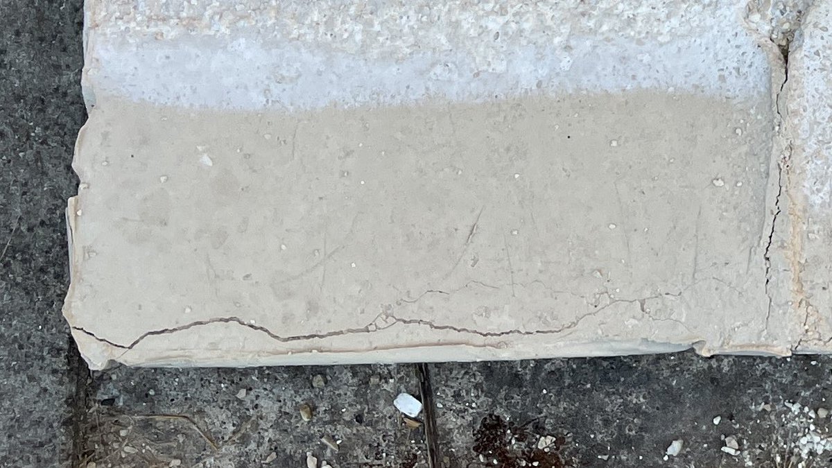 Two months after casting my version of the Dendera roof from artificial limestone. I promised full transparency so here you are: The good, the bad and the ugly. The good news is that the casting is still there, after various climate changes and days of heavy rain and then scorching temperatures. So the basic idea is solid. (What is the basic idea? This: natural, billion-year-old limestone rubble and dust can be “glued” together to form a fake limestone using a strong alkaline that forms a semi-geopolymer based on the impurities of the given limestone. So it is a fake limestone that looks like the natural limestone.) The bad news? I made a series of stupid mistakes so the casting looks less beautiful by now. Okay, how ugly is it? 🧵