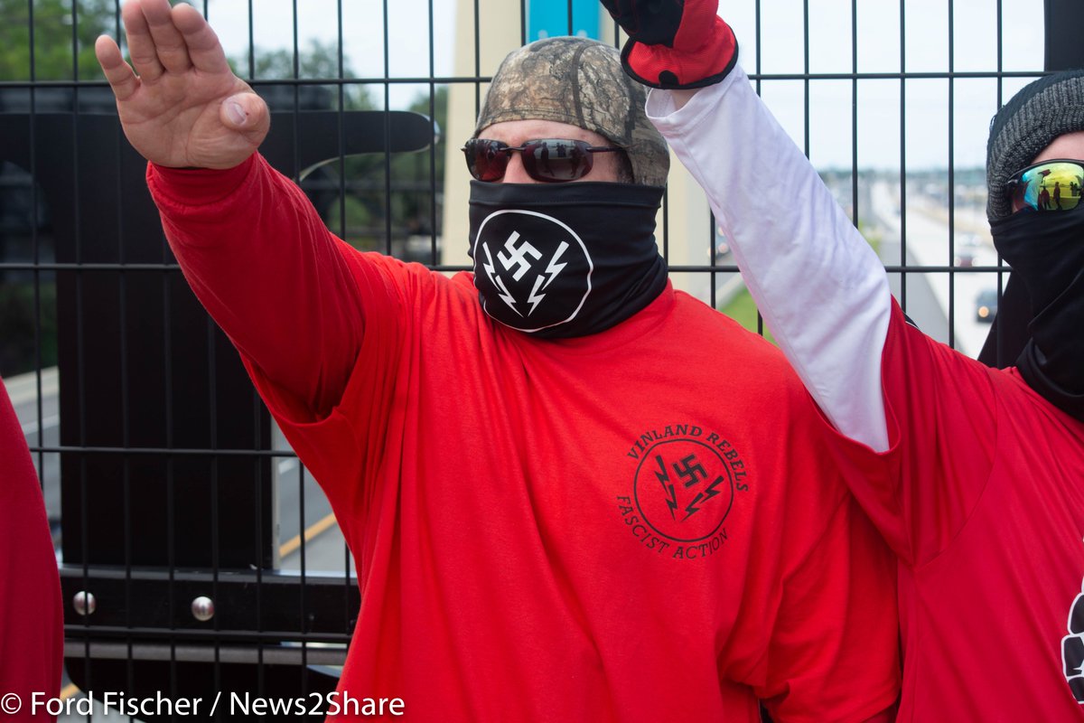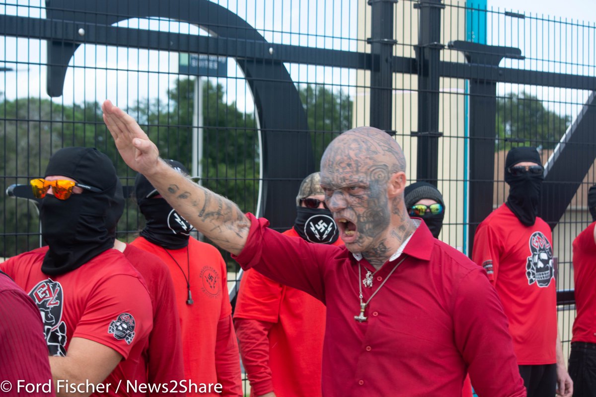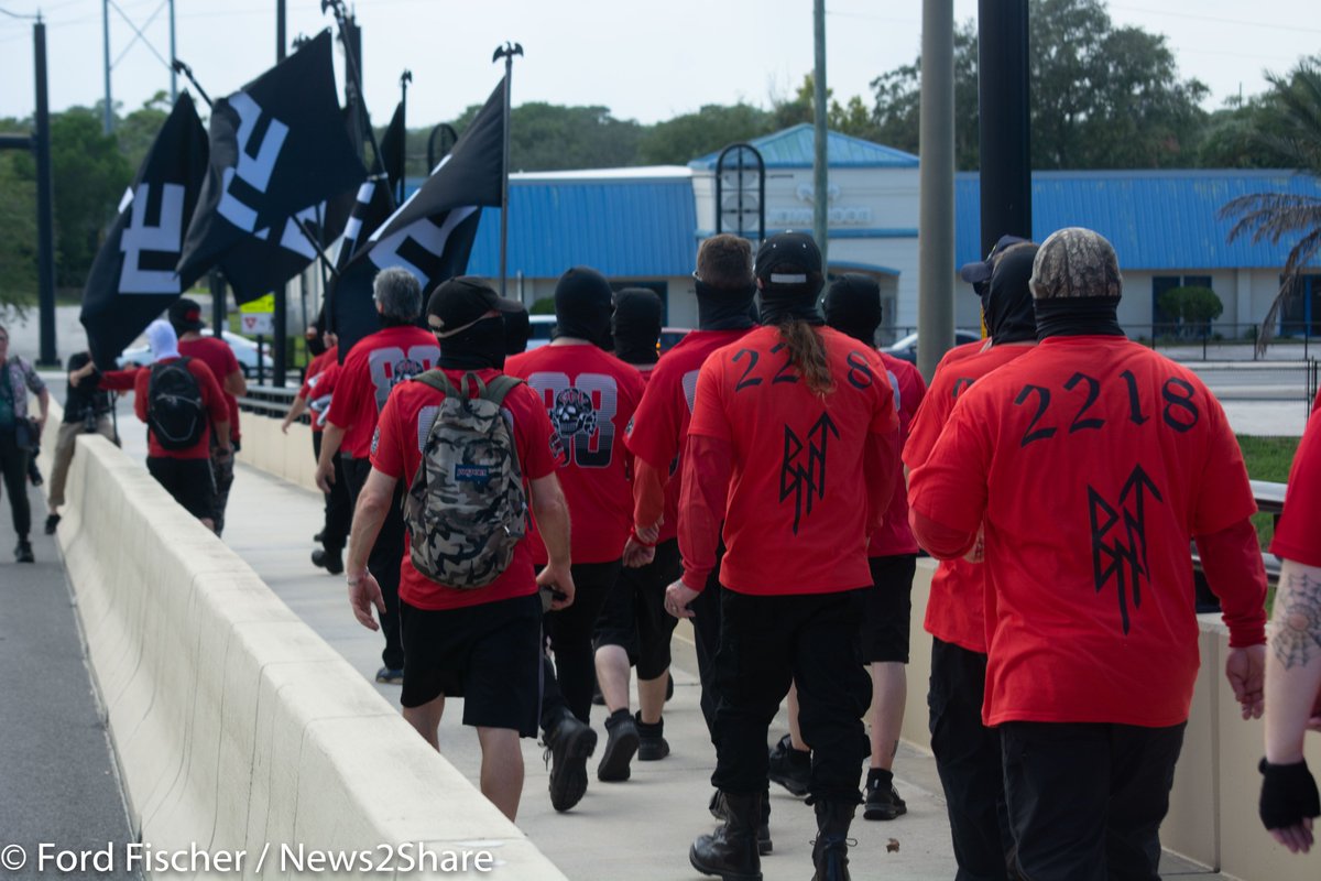 8) PHOTOS: of the Nazi rally today in Orlando led by Christopher "Hammer" Pohlhaus. While they mostly dressed uniformly, groups confirmed in attendance were Blood Tribe, White Lives Matter, Goyim Defense League, and Vinland Rebels Fascist Action. https://t.co/JFpDBMzufe