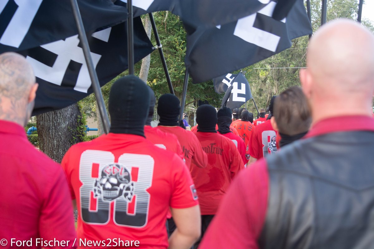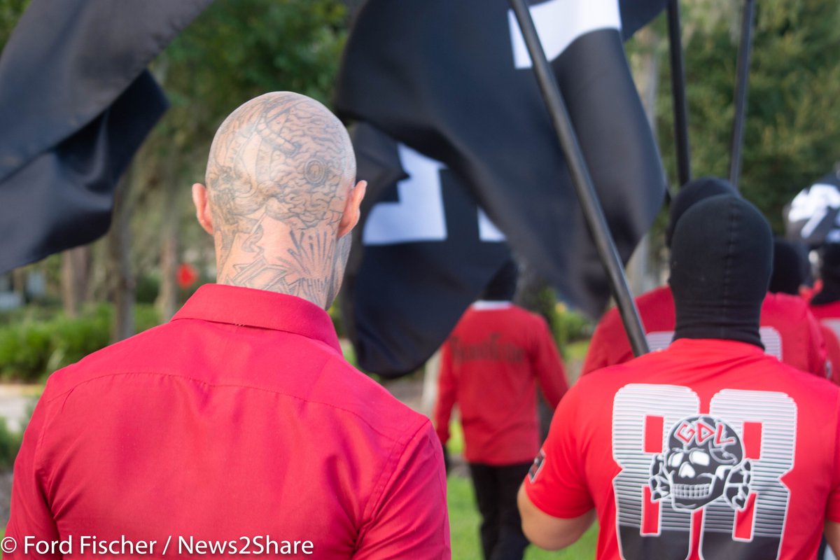 CW: Racism/language VIDEO THREAD: Today the avowed Nazi "Blood Tribe" and "Goyim Defense League" marched in Orlando, chanting "Jews will not replace us" and "Jews get the rope." "All heil the Führer," one would call, and the crowd would respond "Heil Hitler!" https://t.co/oGI9Eotc3e