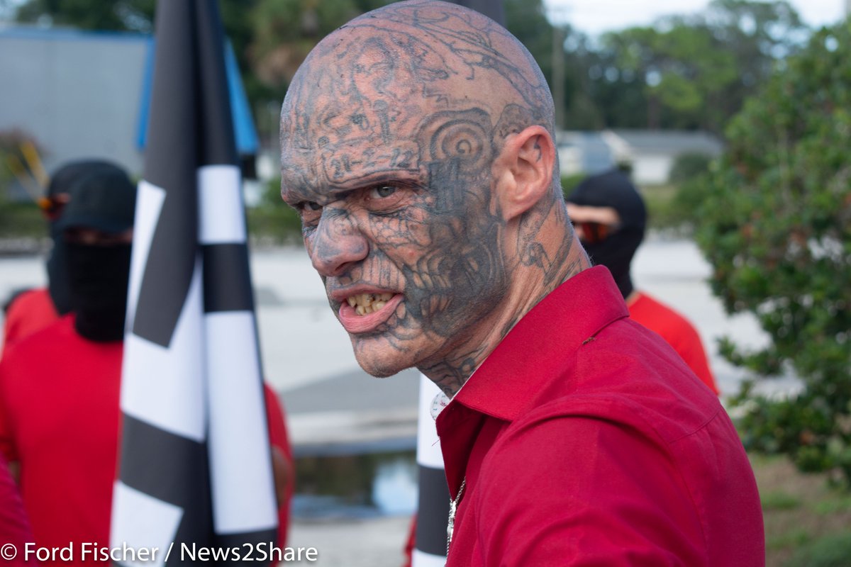 9) Among the most notable faces today in Orlando was Kent "Boneface" McLellan, a Neo-Nazi who says he has traveled to Ukraine to serve with the Azov Battalion. https://t.co/pHC4gEYfDi