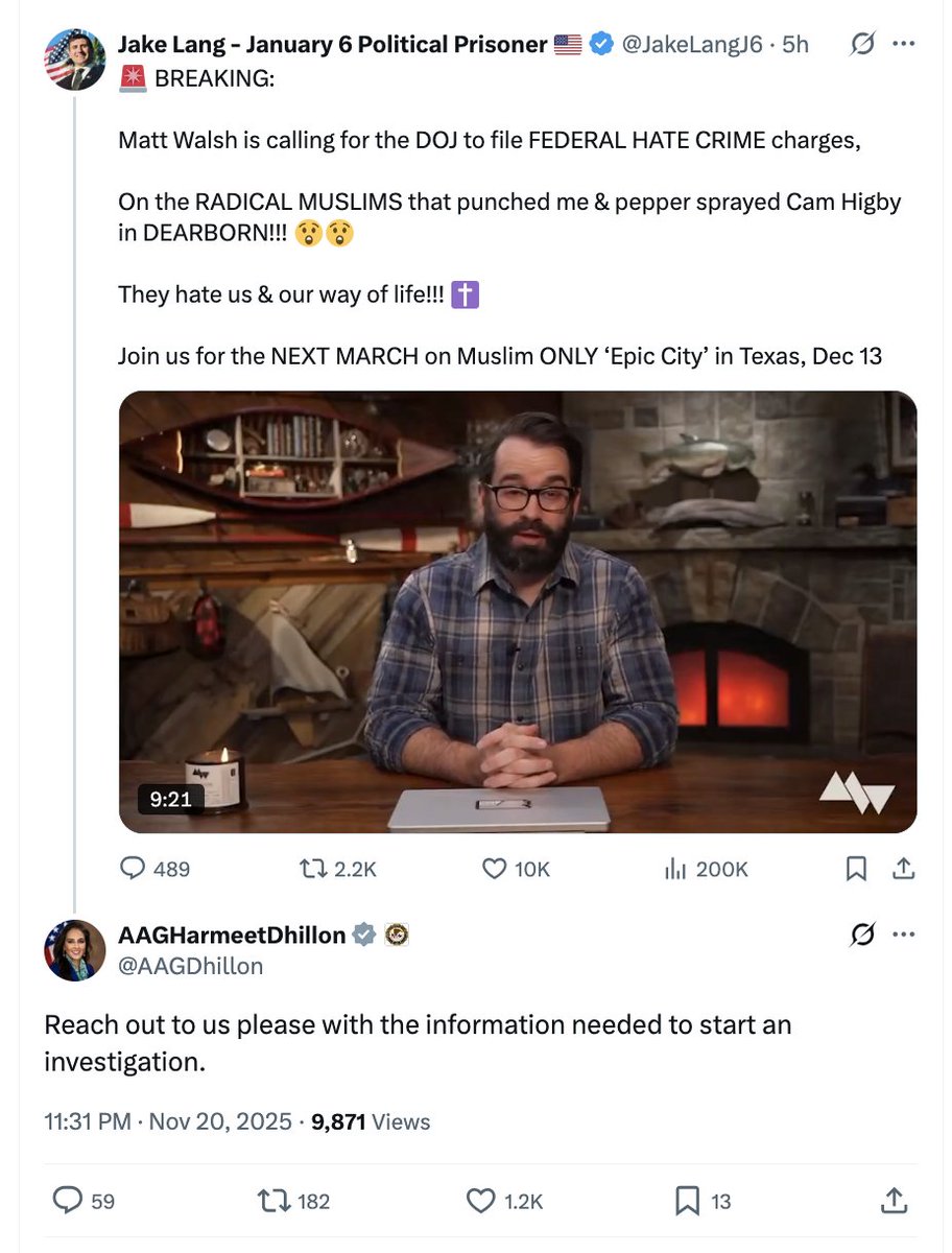 12) "It'd be the most viral video of all time, Jake Lang blows the head off of a Muslim trying to jihad him, watch it in slow motion," Jake Lang said. "Pretty cool!" "It was pre-meditated defense!" he pre-argued when I noted this would probably be used in court if that happened. https://t.co/FdjZXva4im