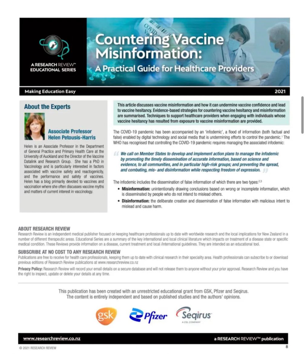 Helen Petousis-Harris - received seed funding from the Bill and Melinda Gates foundation - was paid by Pfizer to speak at events - was funded by Pfizer to do a research review on misinformation -received US$10mill from HHS to analyse adverse events to the jabs https://t.co/N4YvZ9PesK