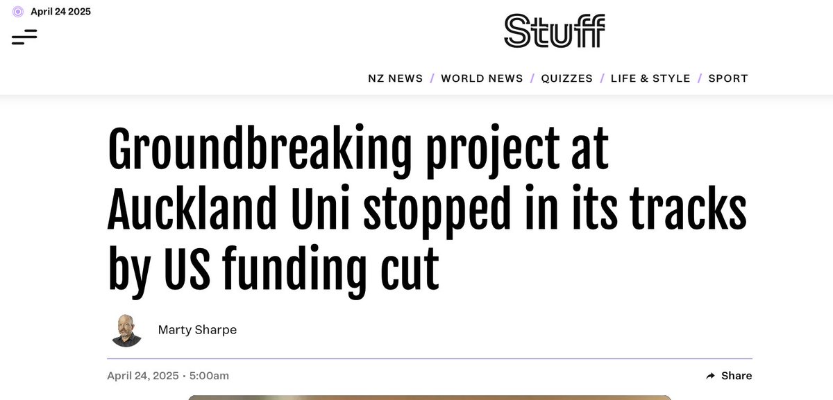 This is really interesting as the funding came from the US Health and Human Services Department. "A groundbreaking global health project that has been run from Auckland for four years, and is on the cusp of coming to fruition, has fallen victim to funding cuts imposed by the Trump administration. The Global Vaccine Data Network was set up in 2019 by University of Auckland Associate Professor Helen Petousis-Harris, and US-based vaccinologist Steven Black."