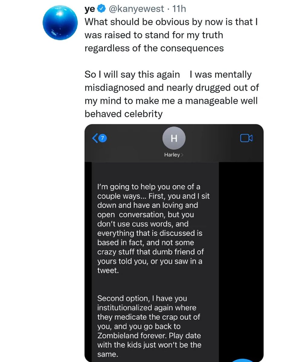 Is this too crazy to believe? Sounds like it. That’s why Ye’s former “personal trainer” Harley Pasternak matters. Not because he’s a “celebrity trainer” or whatever, but because of what he said to Ye behind closed doors now leaked for everyone to see. He pretty much told him: “We’ll drug you back into submission.” “We’ll send you away if you keep talking.” It wasn’t a bluff. It was part of a coordinated effort from handlers to publicists to billionaires, meant to bring Ye back under control. And when that didn’t work, they escalated. Ari Emanuel mobilized the entire system against Kanye, revealing just how much power his family holds. Every bank. Every platform. Every outlet. All in unison. They all blacklisted Kanye West. Not for violence. Not for crime. But for words. Thought crimes. This wasn’t a spontaneous cancellation. It was a warning shot to everyone watching. Including you. They tried to bring him back under control. It didn’t work. Most people would’ve apologized. So many have bent the knee. Played the game again. Ye didn’t. Because now he had something he didn’t before: a cause. A cross to carry. A reason to stop playing. This isn’t a man unraveling. It’s a man who saw the machine up close and decided to expose it. Not clean. Not consistent. But honest in the way most men will never be. And now? He won’t stop talking. They don’t have anything left to take from him. (4/7)