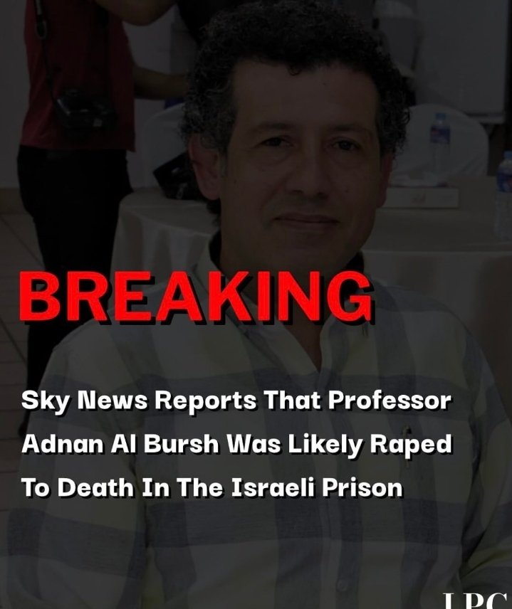 Likely raped to death. A doctor. A stellar surgeon. The embodiment of Palestinian ethics. Likely raped to death. The racism of Western media who are not covering this, and Western politicians who are not denouncing this, together with the thousand other testimonies and allegations of rape and other forms of mistreatment and torture that Palestinians have suffered in Israeli jails, is absolutely sickening.