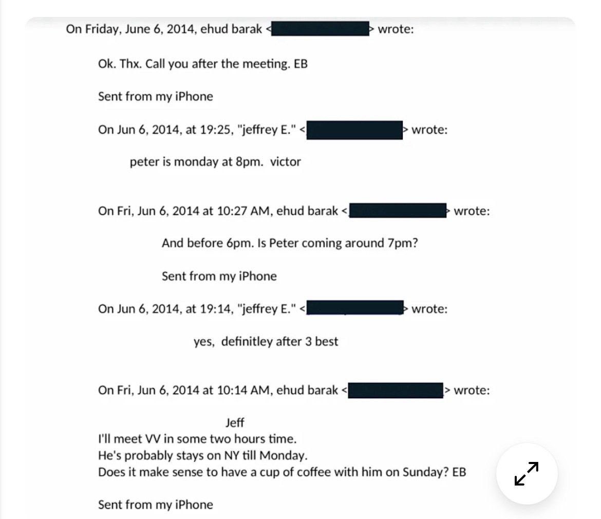 BREAKING: A major leak of 100,000 emails from former Israeli Prime Minister Ehud Barak shows he and Jeffrey Epstein discussed meeting with Palantir founder Peter Thiel. “Trying to arrange it so the security guys will NOT come with us to the island.” https://t.co/w9s2fBFHZB