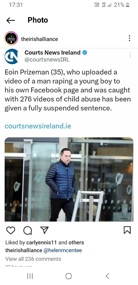 ๐ฎ๐ช In Ireland The Judiciary System will allow Paedophiles walk out of the court without Jail. But those who complain about the condition of Ireland Government and Judiciary or stand up for you religious beliefs like Enoch Burke you are threatened or jailed. Paedos run Ireland https://t.co/QQqeyLuvBM
