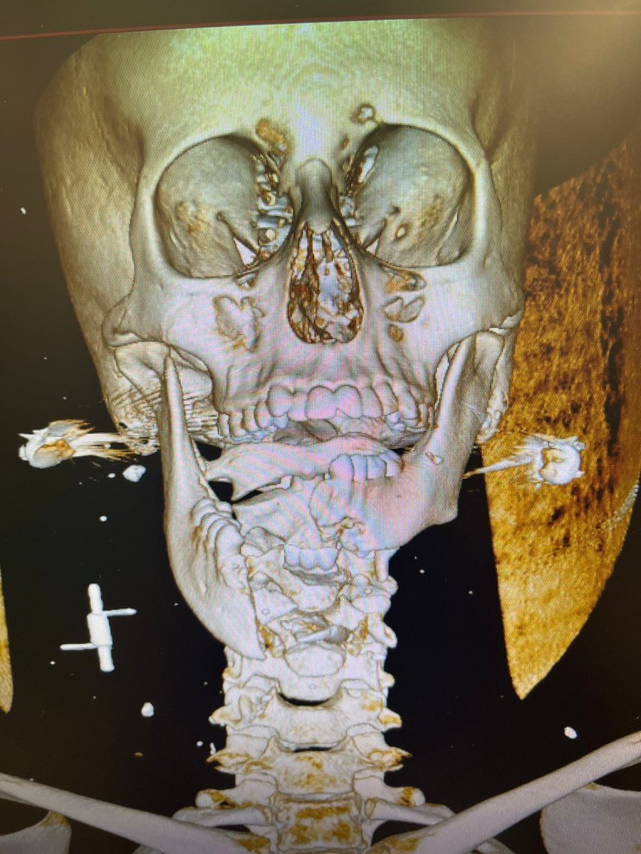 This is the CT facial bones of a 13 year old with a blast injury. The lower jaw is splayed open. This is Israel. https://t.co/vmy1yFWR0j