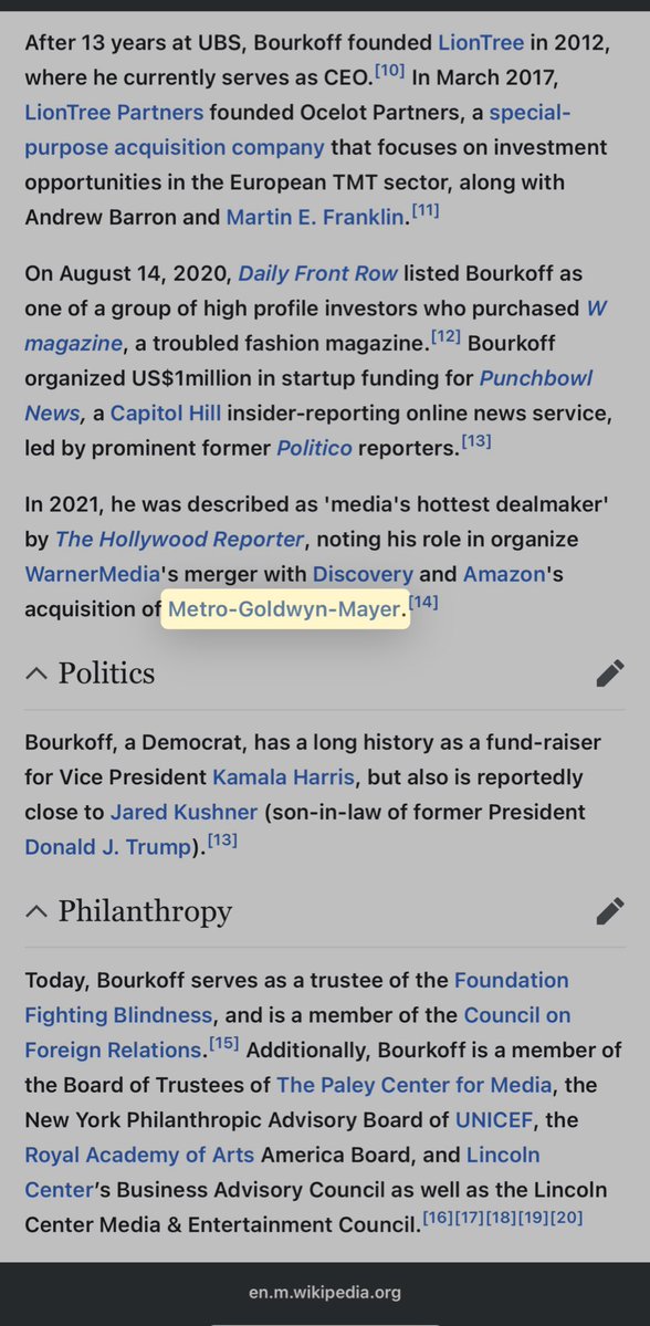 Metro-Goldwyn-Mayer (I’ll help Grok out on this one.) Harry Sloan (Ginkgo/CIA/IDF/McCain Institute) James Nelson (Chewy/BC Partners/GameStop) Mike Finnerty (IBM/Comcast/The Foundry) Aryeh Bourkoff (UBS/UJA/Punchbowl/) https://t.co/EPmhtH9S0t