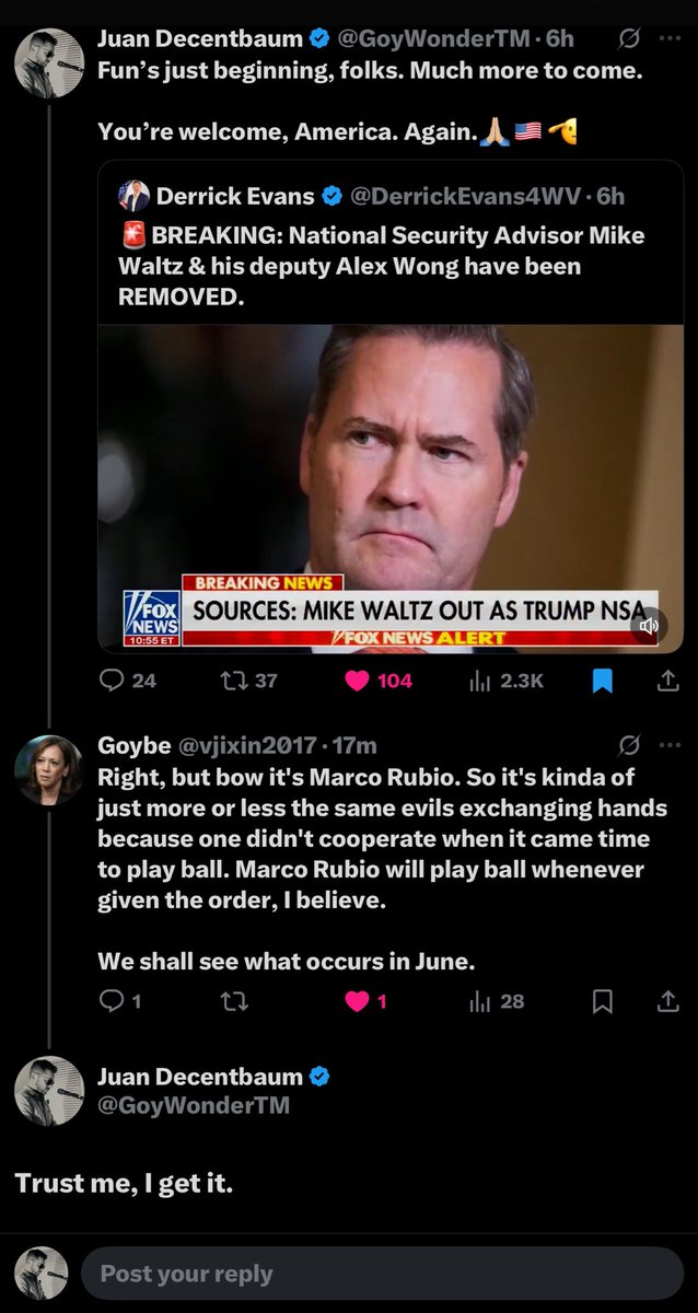 Speaking of Palantir (Anduril), America’s NatSec and protecting our children… SPOILERS: Here’s why Alex Wong and Mike Waltz were removed from NatSec today, and why Waltz was sent to be UN AMBASSADOR. https://t.co/o7w8k20j42