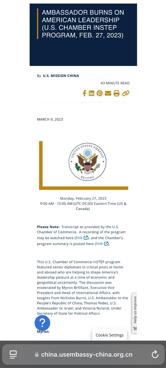*FEBRUARY 7, 2023* “The U.S. Chamber of Commerce InSTEP program featured senior diplomats in critical posts at home and abroad who are helped to shape America’s leadership posture at a time of economic and geopolitical uncertainty...” “…with insights from Nicholas Burns, U.S. Ambassador to the People’s Republic of China; Thomas Nides, U.S. Ambassador to Israel; and Victoria Nuland, Under Secretary of State for Political Affairs.” 💥Tom Nides, Blackstone Vice Chairman: https://www.blackstone.com/people/tom-nides/ (Fuck this “those vibes”-looking fa***t.) 💥U.S. EMBASSY ON CHINA and the TRAITOROUS ISRAELI-LOYAL JEWS in AMERICAN GOVERNMENT colluding with the CCP to undermine America and its economic sovereignty and NatSec permanently: https://china.usembassy-china.org.cn/ambassador-burns-on-american-leadership-u-s-chamber-instep-program-feb-27-2023/