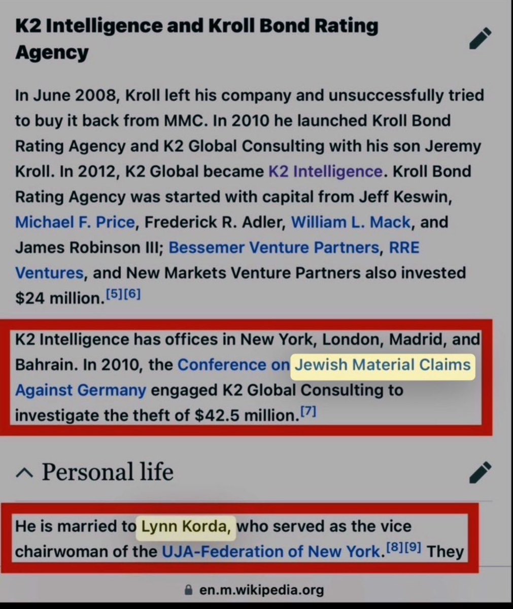 *NOTE: K2 Integrity (Kroll, FTX, Madoff & 9/11) is also the “fixer” for The Conference for Jewish Material Claims Against Germany.