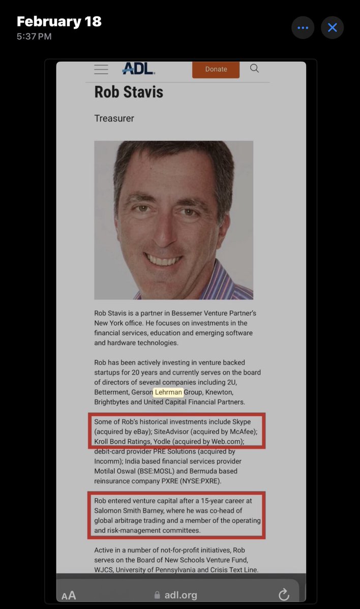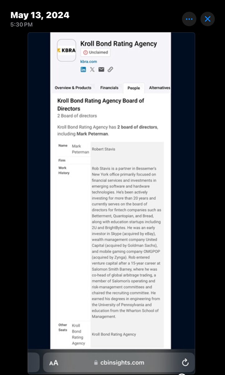 *Speaking of scams… Kroll Bond Rating Agency (KBRA) Jules Kroll, Jeremy Kroll, Alan Bernikow, UJA/UBS “In 2010, he launched KBRA and K2 Global Consulting with his son, Jeremy Kroll.” “…KBRA was started with capital from… Bessemer Venture Partners…” ✅ROB STAVIS, ADL, Treasurer KBRE, Director BESSEMER VENTURE PARTNERS, Partner