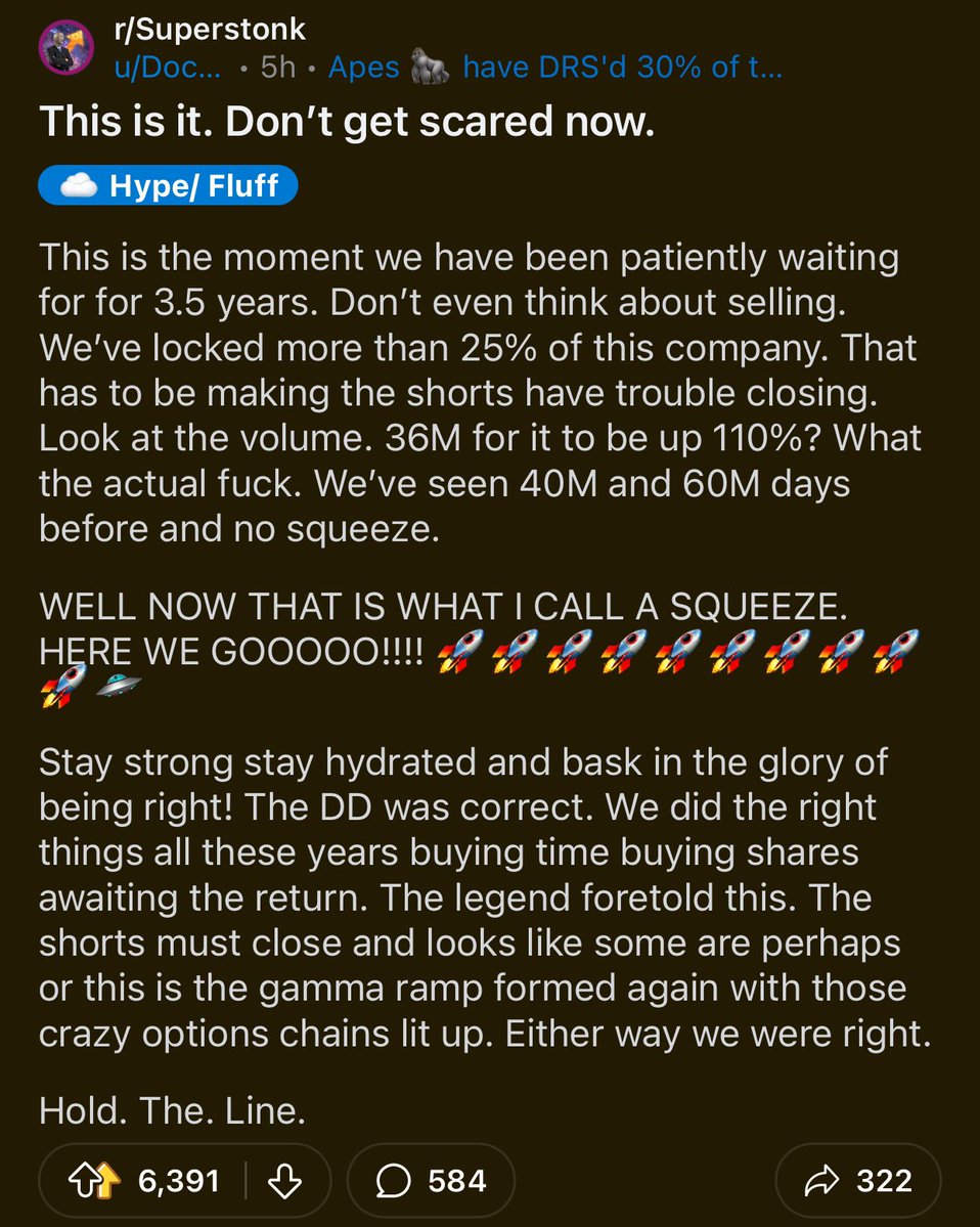 Deranged $GME theorists theorize conspiracy on Reddit. 😡 https://t.co/37JSUP7D9a