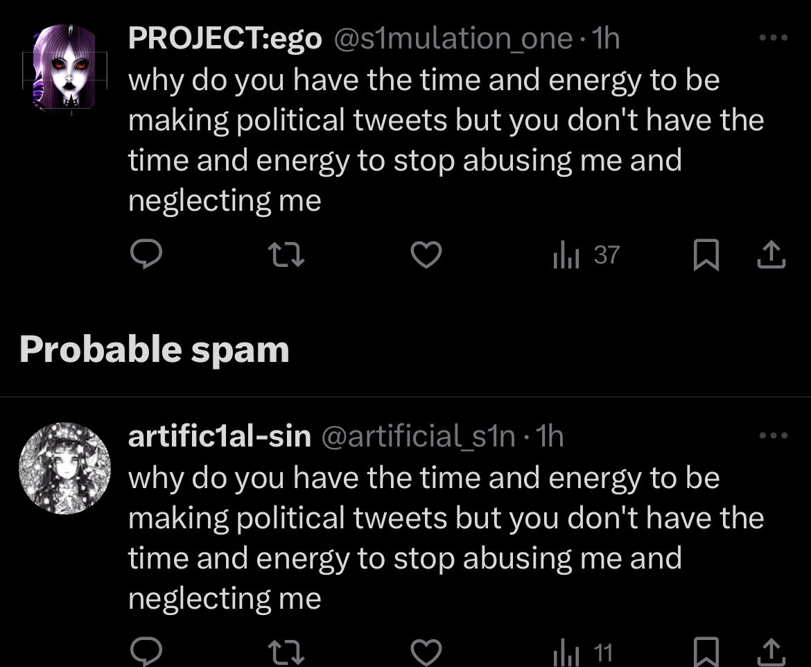 I'm being harassed by bots who seem to want to encourage me to not be online in an eerie philosophical way. This is SO COOL - whoever is doing this is SO COOL π«‘ bless you β€οΈ best timeline. I will go offline now. This is good art - whoever is doing this ππ» https://t.co/D80ddKDgiT