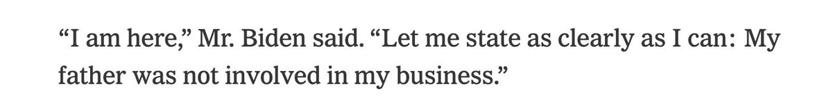 This is so bad. @nytimes doctored what Hunter said today, leaving out the key word. Wow. NYT: “Let me state as clearly as I can: My father was not involved in my business.” Hunter: “Let me state as clearly as I can: My father was not *financially* involved in my business.” https://t.co/cDQEnShr6n