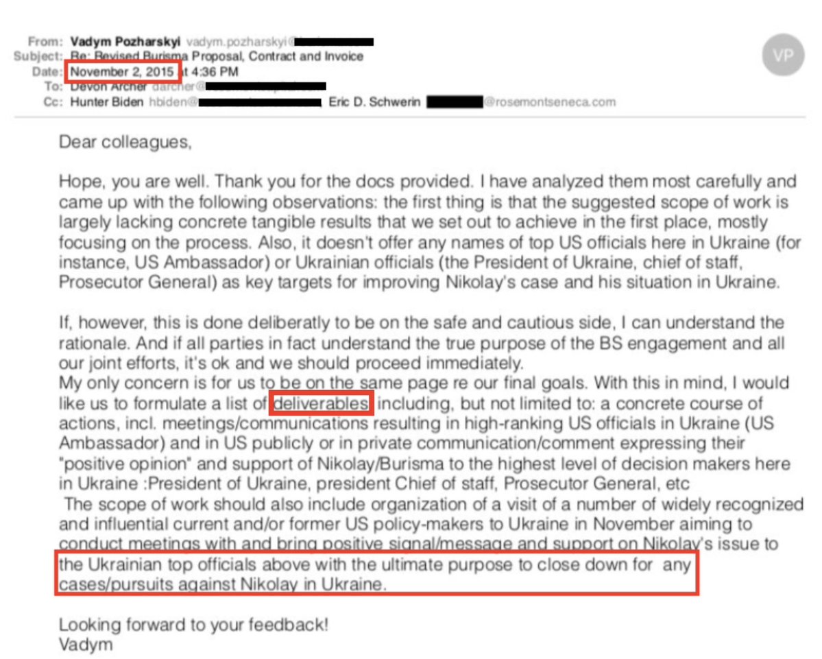So it was Burisma all along and we don't have to take @repMTG's word for it. We have the evidence. On Nov 2, 2015, the director of Burisma's board wrote Hunter demanding "deliverables", specifically to get "high-ranking US officials" to "close down" the cases against Burisma. https://t.co/971gQggFlL