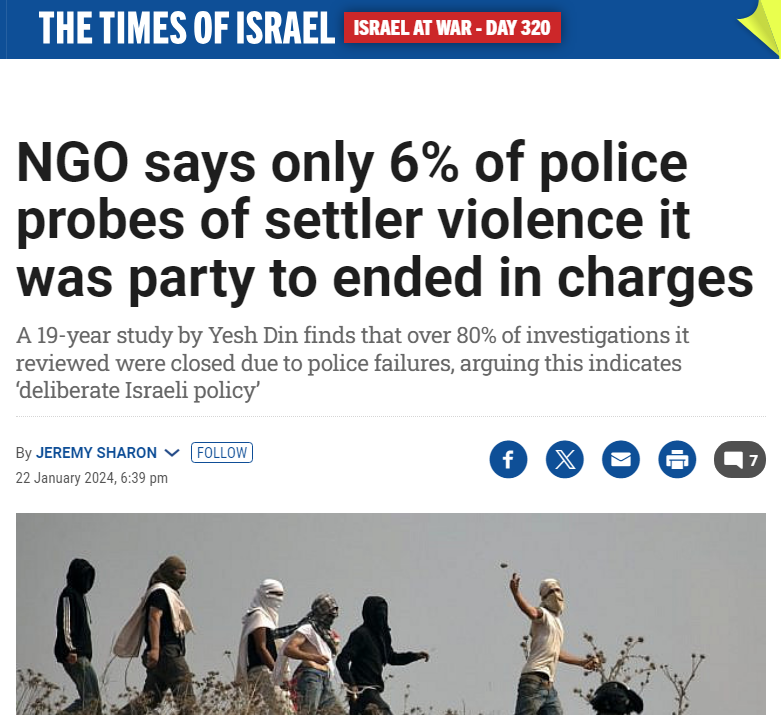 Israeli settlers murdered 3600 Palestinians between 2010 and 2019. According to rights groups, only 6% led to charges, not even convictions! They say this is deliberate state policy to let Jewish terrorists go free. https://t.co/PM658x6dEb