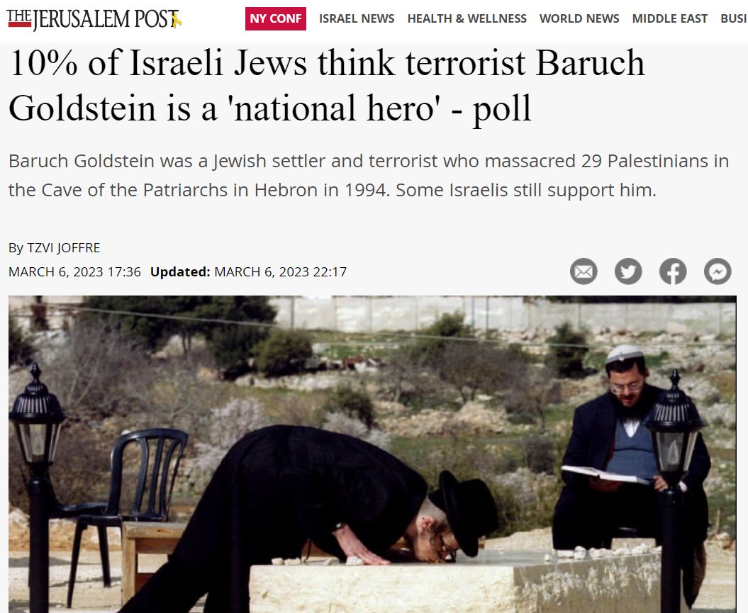 Jewish terrorist Baruch Goldstein murdered 29 Palestinians praying in a mosque. He is considered by many Israelis to be a hero, including the Israeli official Ben Gvir, who has a portrait of Goldstein in his home. Pictured: Jewish man kissing Goldstein's tomb, a national monument in Israel.