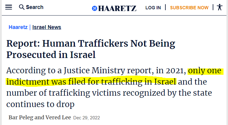 Israel's government is not interested in stopping child trafficking. Only one indictment, not even conviction, in a whole year. https://t.co/AzlKwgSXo7