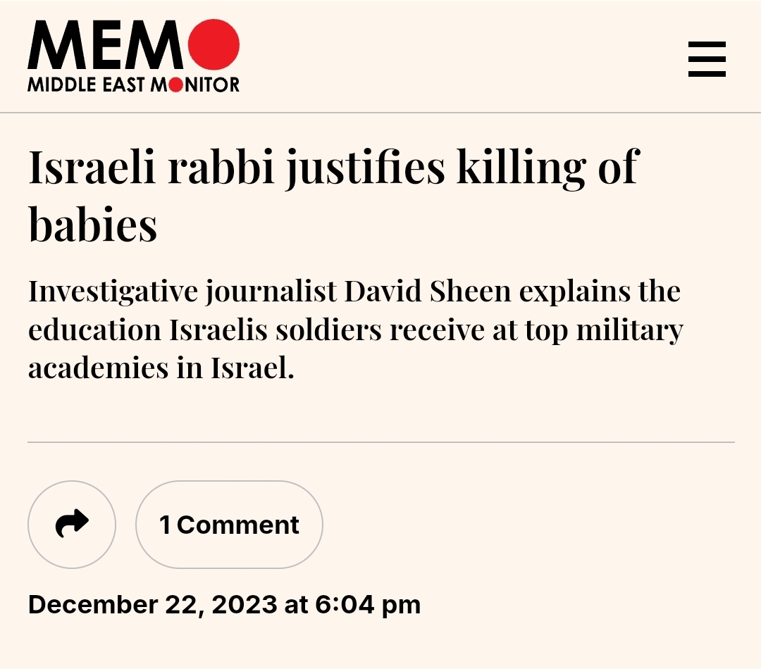 Top Rabbis in Israel teach that it is moral to kill babies. Note: These are not fringe Rabbis. They are teaching at the "top military academies in Israel." https://t.co/zbrICeQgM7