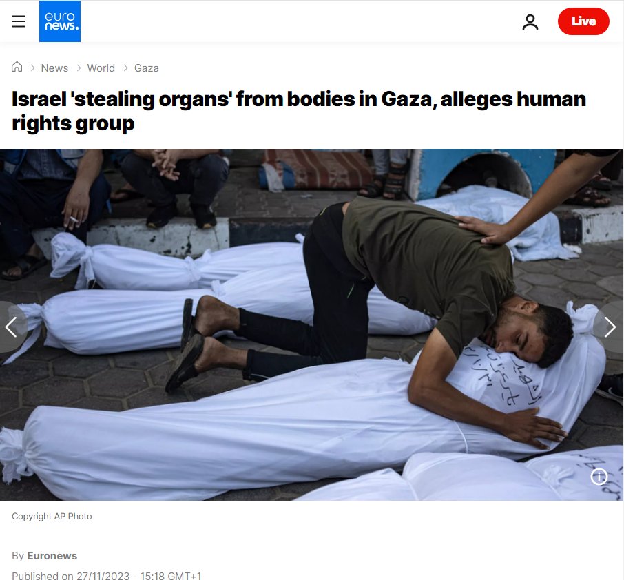 Google needs to take down these news sites. They carry stories where Israeli officials admit to harvesting organs from Palestinians without their consent. Reporting stories like this - even if they are true - is ANTISEMITIC. After all, any action which might provoke criticism of Jews, Judaism, Israel, Israeli war crimes, etc., is by definition ANTISEMITIC.