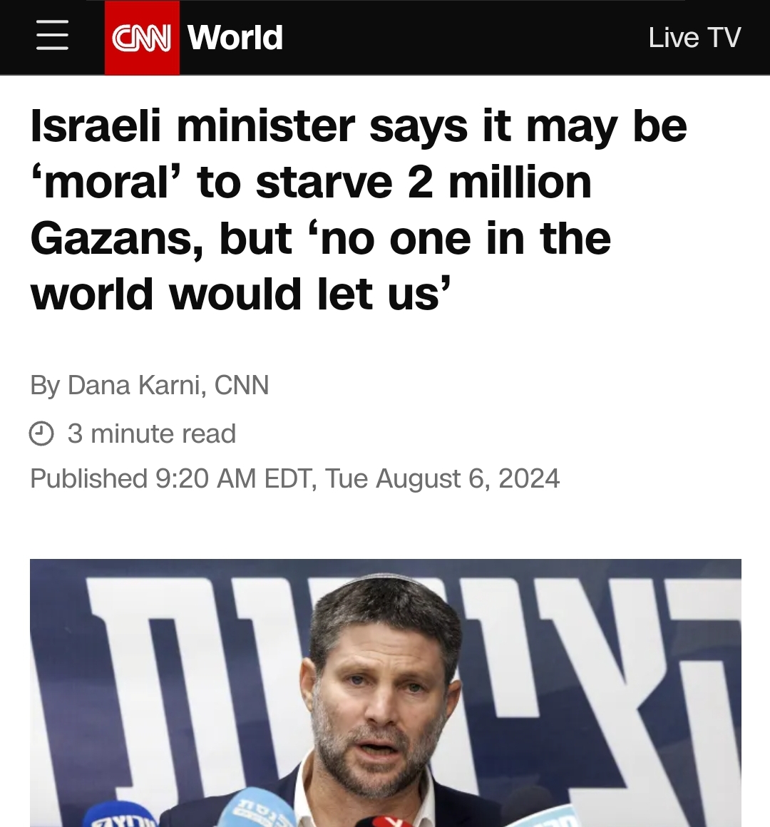 Top Israeli officials consider it moral to starve 2 million Palestinians, including countless women and children. Again, not fringe nobodies. Top officials who are very popular in Israel.