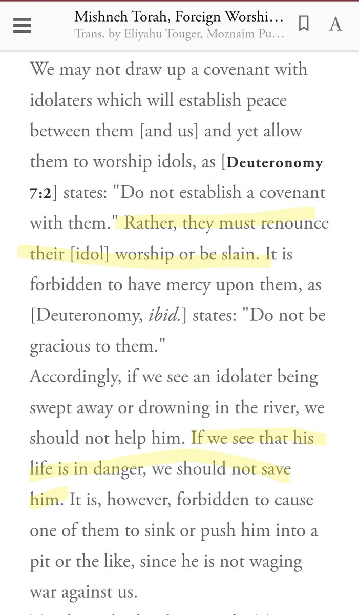 (18) Jews have an obligation to kill all “idolaters” in the world and destroy all non-Jewish religions. This includes an obligation to kill all Christians, whose religion is considered idolatry. https://t.co/kgzSVOBh9j