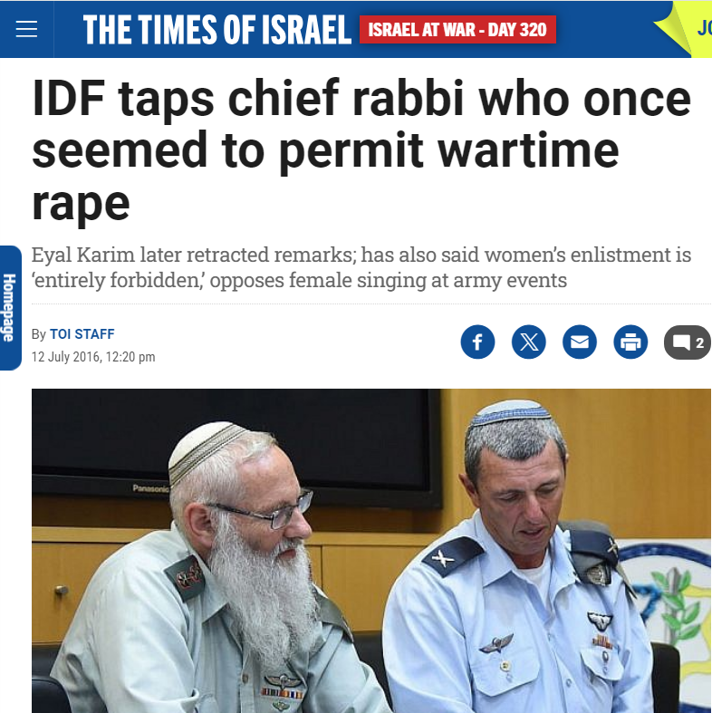 The chief Rabbi of the IDF is on record saying that battlefield rape is permissible. https://t.co/xABgkHObzf