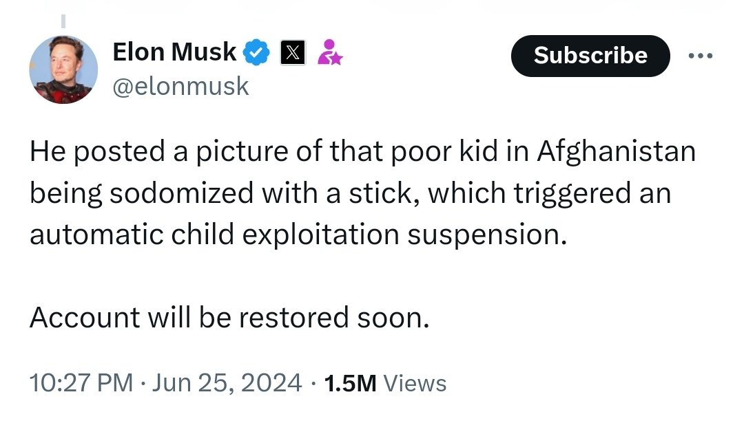 If you are a Zionist account who harasses Muslims by posting a video of a Muslim child being sodomized, @elonmusk will personally reinstate your account. But if you burn the Talmud, i.e., the Jewish scripture that says there is no punishment for sodomozing boys younger than 9, then you're banned. Who owns X? The relevant passage from the Talmud is Sanhedrin 54b: "if a child who is less than nine years old engages in homosexual intercourse passively [i.e., is sodomized], the one who engages in intercourse with him is not liable."
