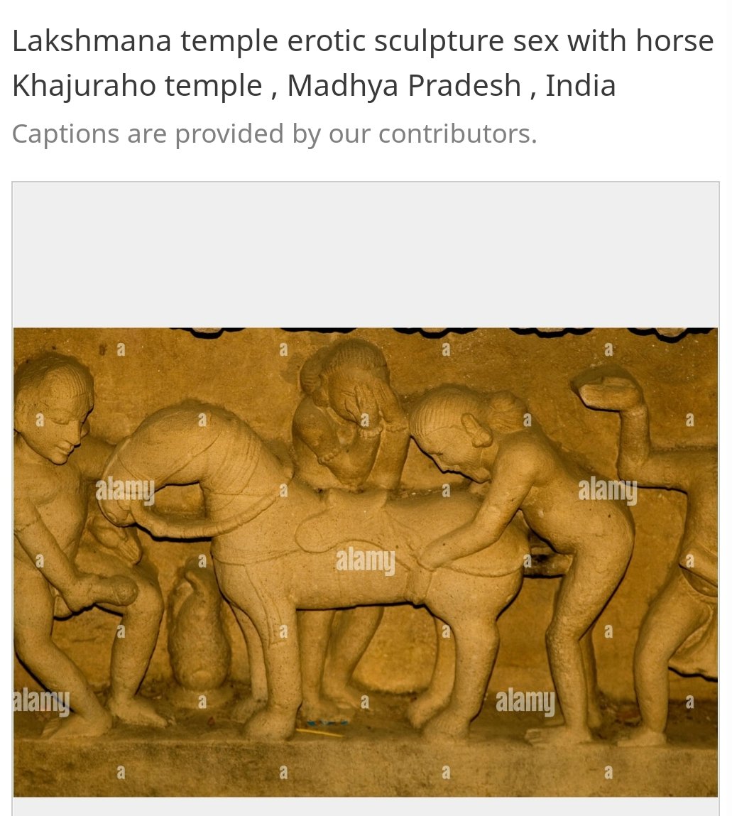 Bestiality in Hinduism: Hinduism is the only religion that teaches the permissibility of besitiality. Sometimes the animals are dead (as in the Ashvamedha ritual which entails sex with a dead horse). However, other times living animals are raped. Consider the famous Hindu text Kama Sutra. The text (Kama Sutra 5.6.5) gives the following advice: "When a man does not find any woman to his taste, how does he satisfy himself? With men, or with the vaginas of other species, mares, she-goats, bitches, sheep, any animal of female gender, as he would, Otherwise, he manages by simply “seizing the lion” (simhakranta). meaning masturbation. In this connection, it is said: In an upright position, seizing the lion means grasping one’s sex with one’s hand and thus scattering one’s orgasm. Since spilling one’s seed anywhere is a serious offense, a purification rite should then be performed." Hindu texts like Kamasutra encourage the rape of animals and scenes of animal gangrapes are depicted on the sides of Hindu temples. For example, the Khajuraho temple has a famous sculpture of two men raping a horse together.