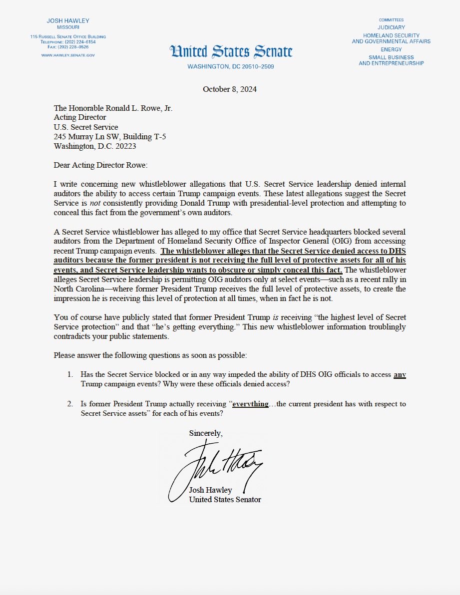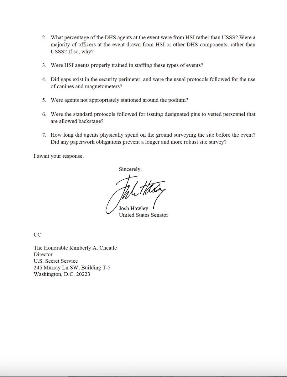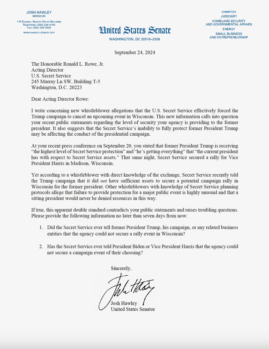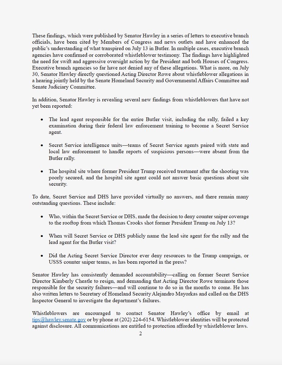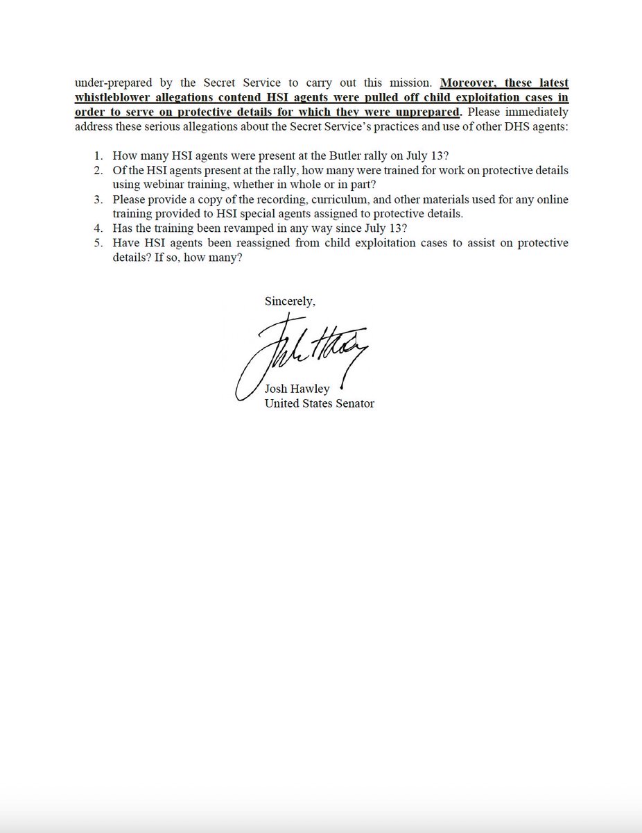 🚨🚨NEW - My letter to Secret Service Director Rowe detailing new whistleblower allegations that Homeland Security agents working the Butler Trump rally received only “webinar” training beforehand https://t.co/KQZbgDf7Rs