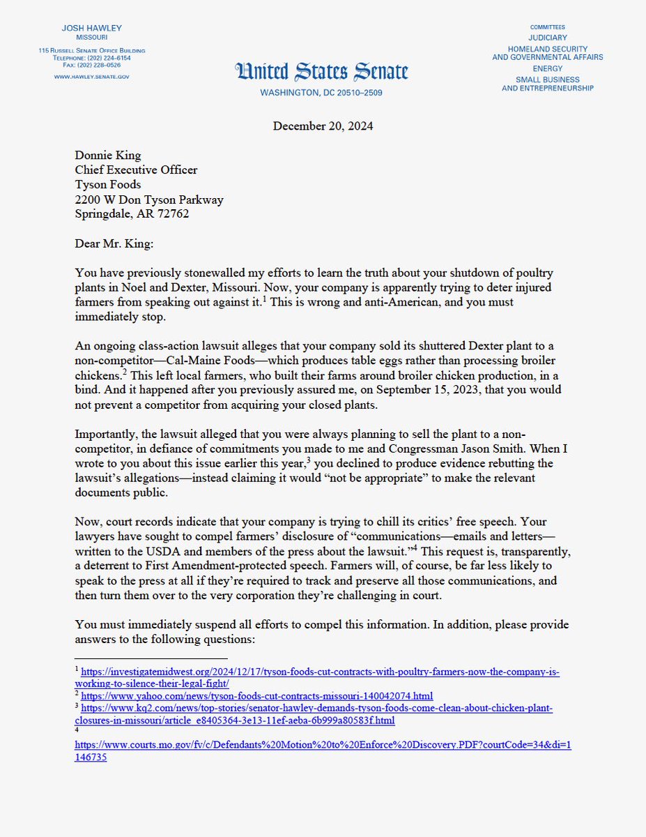 After shutting down Missouri plants and taking Missouri jobs, now Tyson Food is trying to silence Missouri farmers and stop them from getting accountability. How about Tyson tells the world instead why it’s using slave child labor in its supply chains https://t.co/pJZqqud1QI