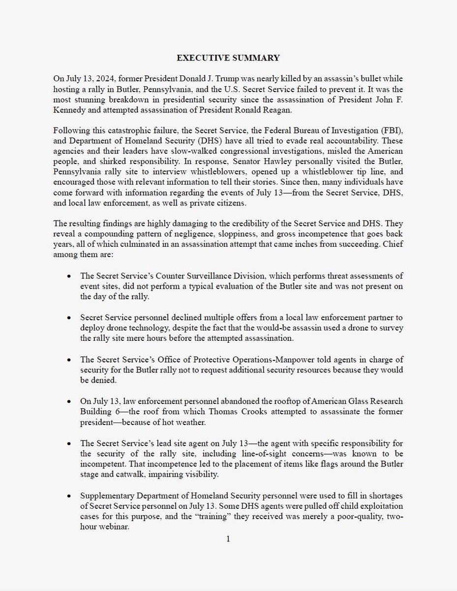 🚨🚨 NEW - Following the latest assassination attempt on @realDonaldTrump, I’m releasing a comprehensive Whistleblower Report on the multiple failures of Secret Service & DHS - including new allegations & numerous unanswered questions due to USSS stonewalling https://t.co/Rxcim9N05U